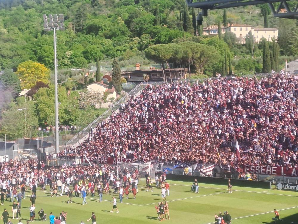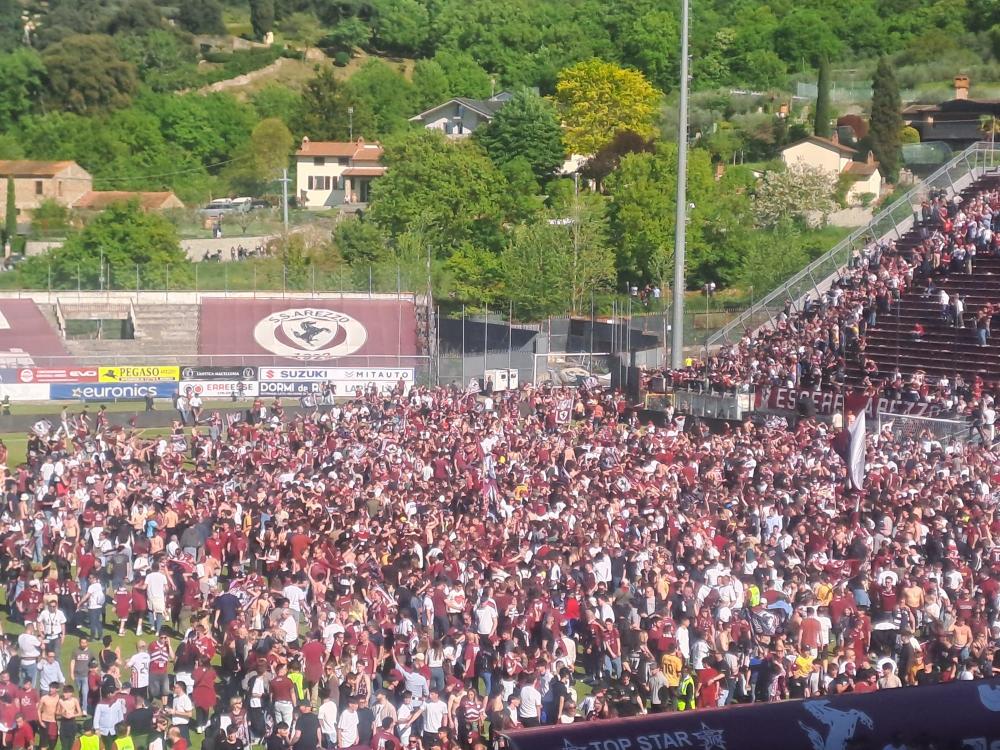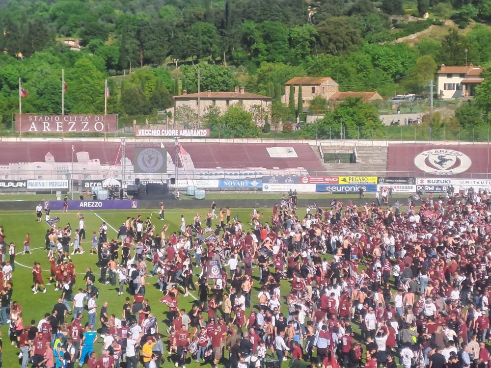 Arezzo promosso in Serie B. Al triplice fischio scoppia la festa amaranto