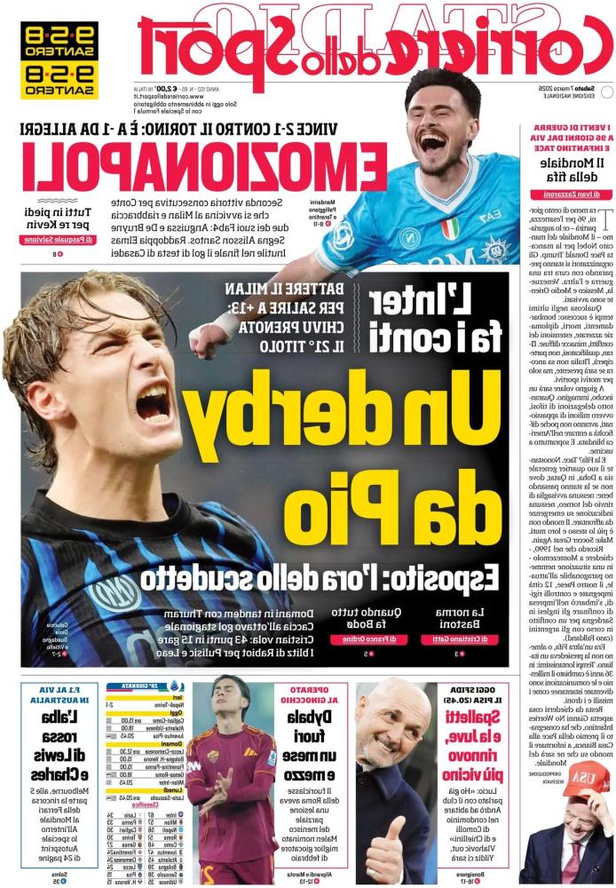Ecco le prime pagine de La Gazzetta dello Sport, Tuttosport e Corriere dello Sport, i tre maggiori quotidiani sportivi di oggi, sabato 7 marzo 2026.